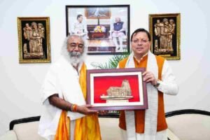 मुख्यमंत्री धामी से कल्कि धाम के पीठाधीश्वर आचार्य प्रमोद कृष्णम ने की शिष्टाचार भेंट