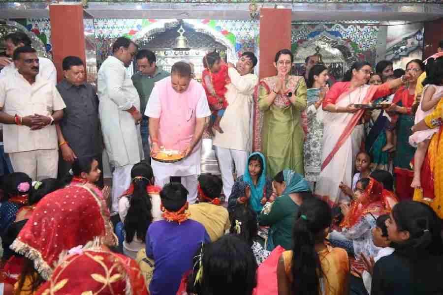 देहरादून : कैबिनेट मंत्री गणेश जोशी ने आज शारदीय नवरात्रि के महानवमी के सुअवसर पर किशन नगर स्थित राधा कृष्ण मंदिर में मां सिद्धिदात्री की आराधना कर 151 नौदुर्गा स्वरूपा कन्याओं का सामूहिक रूप से विधि विधान पूर्वक कन्या पूजन किया।