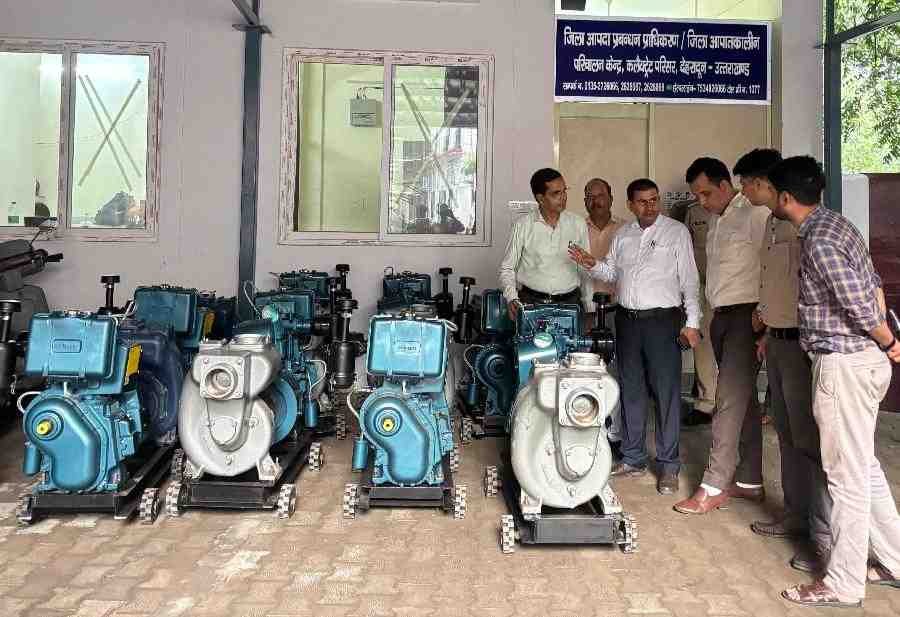 जिला आपातकालीन परिचालन केंद्र में डी-वाटरिंग पंप वितरण के दौरान जिला आपदा प्रबंधन अधिकारी ऋषभ कुमार, नगर निगम के सेनेटरी इंस्पेक्टर राजेश बहुगुणा सहित जल संस्थान, जल निगम व सिंचाई विभाग के अधिकारी मौजूद थे।