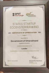 स्टार्टअप इंडिया रैंकिंग में उत्तराखण्ड को मिला ‘लीडर’ दर्जा, वाणिज्य एवं उद्योग मंत्रालय ने प्रदान किया Certificate of Appreciation